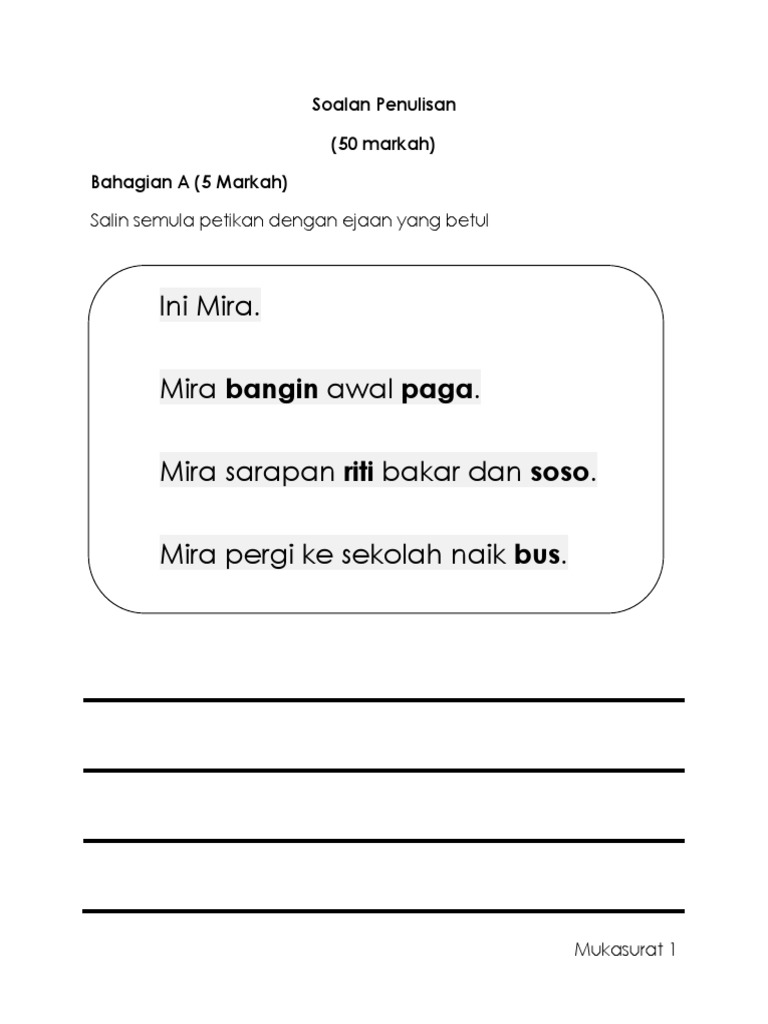 Related : Soalan Penulisan Tahun 1 / Kertas soalan ini mengandungi 3 bahagian iaitu bahagian a, bahagian b dan bahagian c..